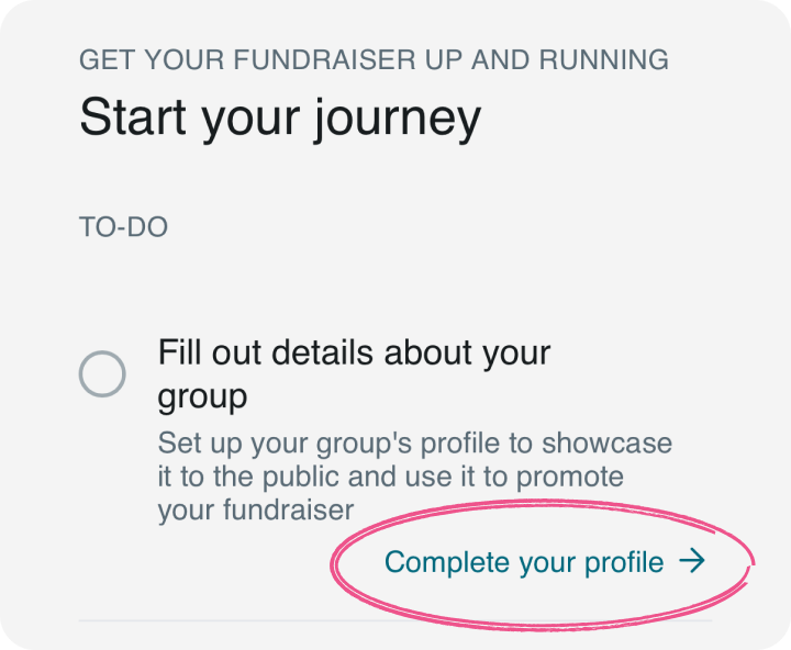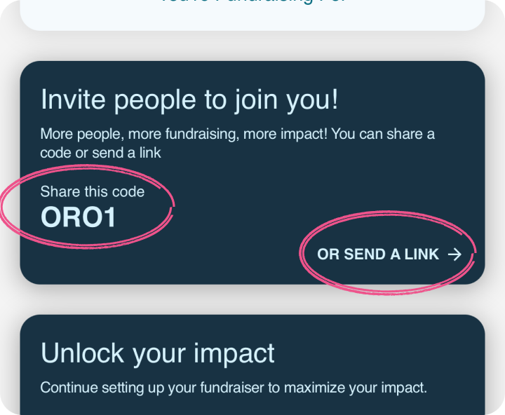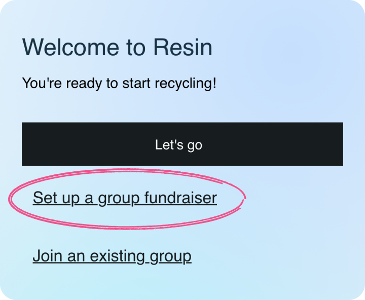 Open your Resin App. Enter your email address and click on the magic link to open up the welcome page where you can set up a group fundraiser.